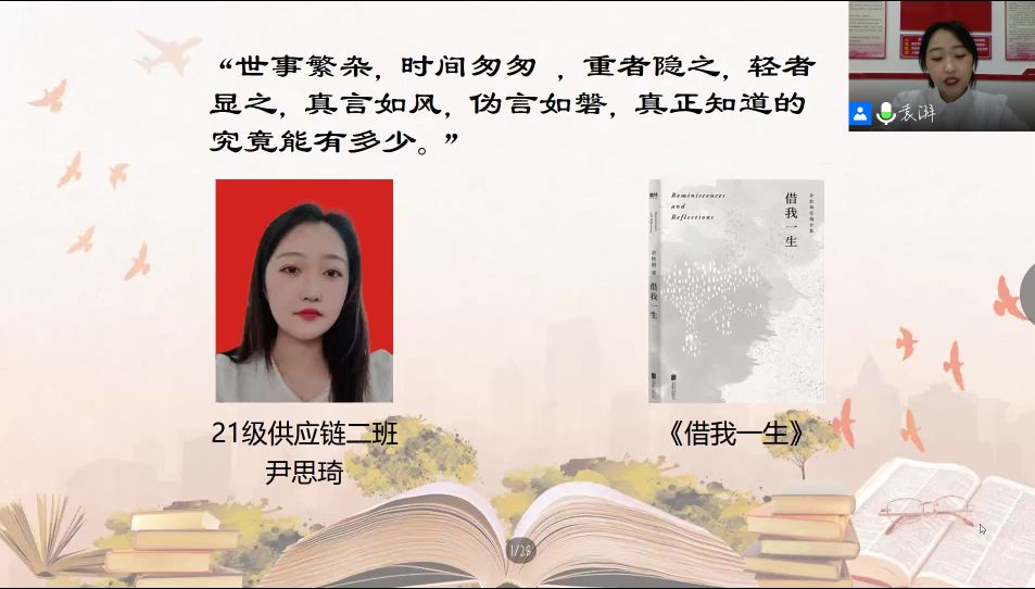此次活动由我院分团委主办,我院社团联合会与励耘读书社共同承办,历时20余天,累计征集参赛作品184份,评审组对所有参赛作品进行匿名评选,最终评选出10份优秀作品并邀请10位分享者进行线上直播分享。
