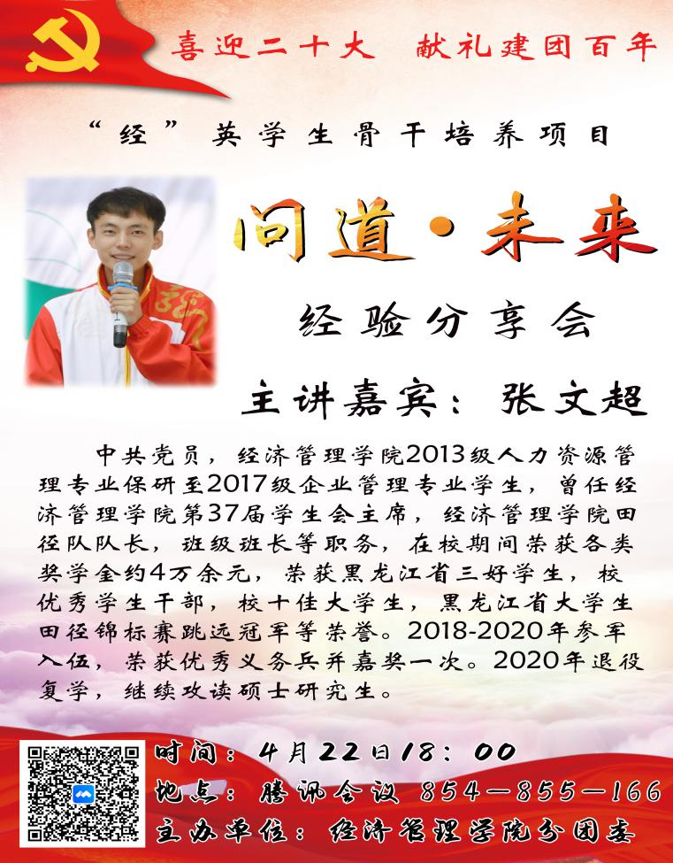 4月22日,公司举办“经英”员工骨干专项培养项目之“问道·未来”经验分享会,本次分享会采取线上线下相结合的方式举办,邀请公司优秀毕业生张文超作为主讲嘉宾,全体员工骨干踊跃参加。