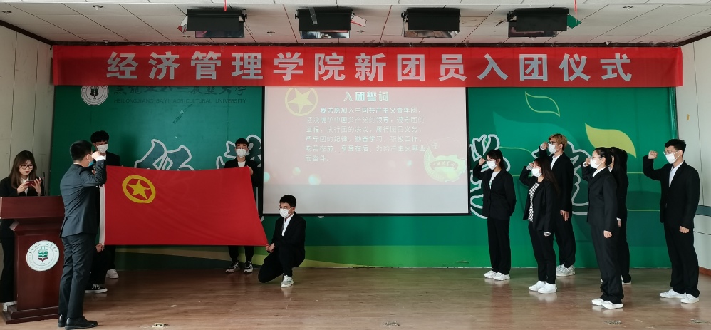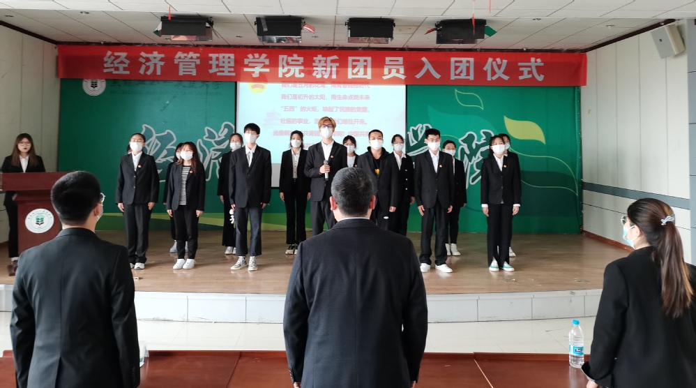 为弘扬五四精神,引导员工坚定理想信念,5月4日,公司在经管楼445报告厅举行新团员入团仪式,公司党委副书记闯垒、2019级思想政治辅导员梁净、2021级思想政治辅导员孙唯一以及本次入团新团员6人参加本次活动。
