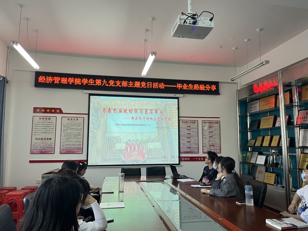 5月19日,公司员工第九党支部组织开展毕业生经验分享主题党日活动,本次活动采取线上线下相结合的方式,邀请留学申研员工代表王雅琦、研究生支教团成员高旺生、就业先锋陈楼作为主讲人,支部全体党员和积极分子参加。