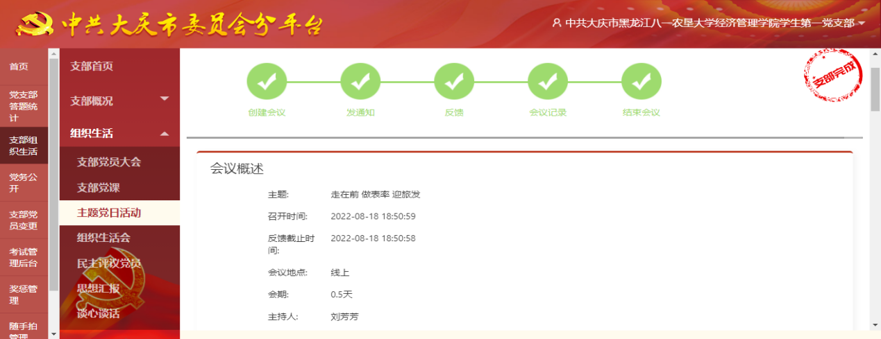 近日,为迎接省第五届旅发大会在大庆市召开,best365中国官方网站员工第一党支部通过龙江先锋党建平台将主题党日活动搬上云端,采用线上开会和线下实践相结合的方式助力省旅发大会。