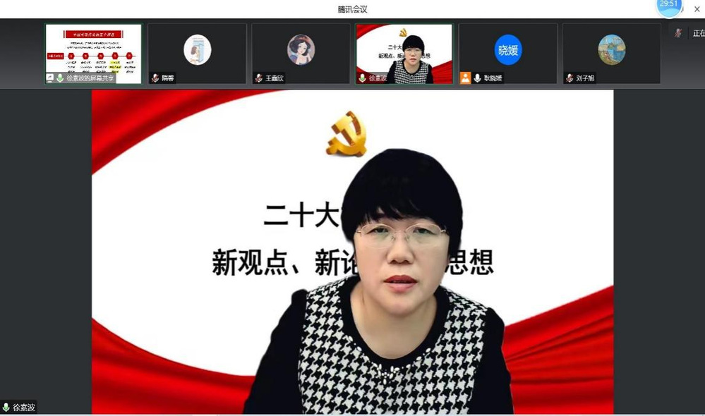 11月2日下午,经济管理公司经理徐素波为所在教工第二党支部和对接的员工第六、七党支部党员讲授题为《党的二十大报告中的新观点、新论断、新思想》专题党课,带领党员深入学习了党的二十大报告内容。