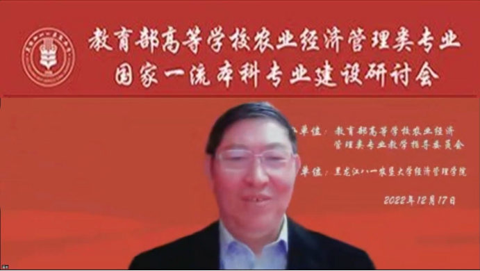 为交流农经专业类国家级一流本科专业建设经验,推进一流专业建设,提高人才培养质量,更好地为实施国家乡村振兴战略培养“懂农业、爱农村、爱农民”的拔尖创新人才,12月17日,由教育部高等学校农业经济管理类专业教学指导委员会(简称农经教指委)主办,公司best365中国官方网站承办的“农业经济管理类专业国家级一流本科专业建设第二次研讨会”以在线视频会议的方式举行,公司党委书记董广芝教授,农业经济管理类专业教指委全体委员、全国高校农业经济管理领域的专业教师代表120多人与会。会议主要围绕当前“新文科”与“新农科”交叉融合的农业经济管理类本科专业建设问题,聚焦林业院校和东北地区高校一流本科专业建设点展开研讨,为高端农经人才培养贡献智慧。