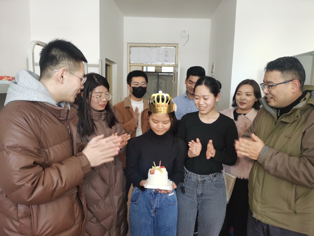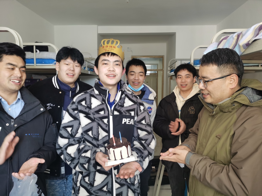 公司为返校日过生日的两名新同学准备了特殊的“见面礼”,香甜的生日蛋糕、真挚的生日祝福、美妙的生日快乐歌……以这样暖心的方式为他们庆祝进入大学校园的第一个生日,弥补了他们旅途舟车劳顿没能和家人一起庆祝生日的遗憾。