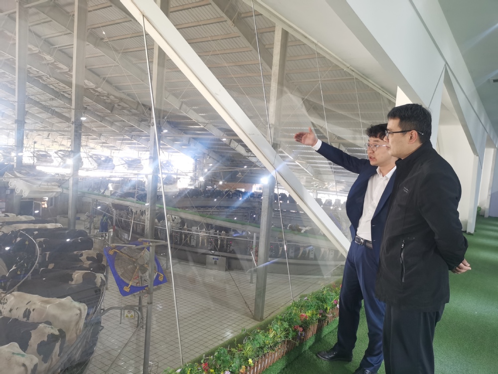 4月26日上午,在认养一头牛(衡水)乳品有限公司,代表团首先在人力资源经理路展陪同下参观了企业的挤奶厅、泌乳间、犊牛区、饲料加工区等地,了解生产管理情况。座谈中,牛场场长韩纯刚介绍了企业发展历程、发展概况、业务范围和未来的战略规划。闯垒介绍了学校和学院的创办历史、团队条件、员工培养模式及成果、2023届毕业生的就业需求。双方围绕进一步深化校企合作进行了交流,就实习实践就业基地建设、人才需求、学分置换等方面进行了沟通,提出在人才培养方面要深度合作。