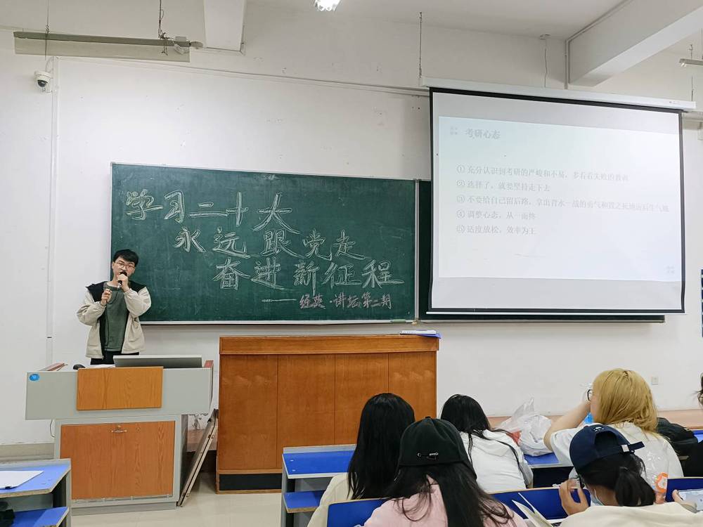 闻强龙从如何确定考研目标、如何增强考研信心、如何制定复习计划等方面分享考研成功的经验,他的备考经验给正在备战考研的学子树立了信心,坚定了目标。张威威从目标设定、大学规划、如何培养学习兴趣三个方面与同学们分享自己的老员工活,让大家对推免研究生政策有了更加深刻的了解。