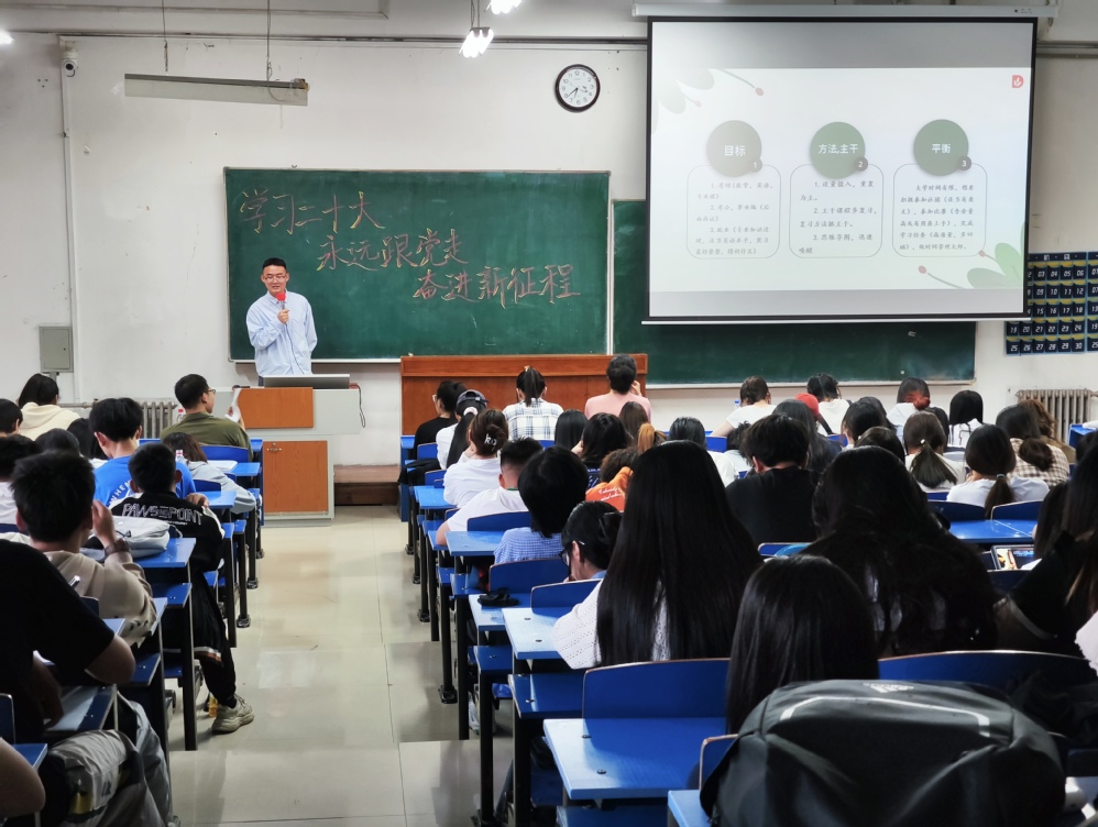 冯帅鑫结合“想要成为怎样的人”和“大学期间想要收获什么”这两个问题,分享了自己参加专业竞赛获得各种奖项的经历,对如何在大学四年中提升自我,在就业过程中成功拿到offer进行分享,引导同学们明确未来发展方向。杨金宇从目标、方法和时间管理三个方面对自己的保研经历进行了简单的回顾和总结,他指出,要采用科学的方法,抓主干复习,并且平衡好学习和娱乐的时间,还特别推荐了自己建立思维导图的复习方法,使同学们受益匪浅。