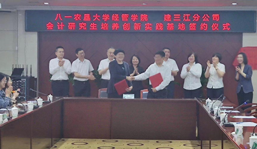 为打造学科发展亮点、突出公司产品特色,6月12日,best365中国官方网站徐素波经理一行赴北大荒农垦集团有限公司建三江分公司推进校企共建、公司产品创新实践基地建设工作。建三江分公司党委委员、副总经理刘佳波出席仪式,建三江分公司财务管理部、人力资源部及七星、八五九等五个农场有限公司财务管理部相关人员参加签约仪式。
