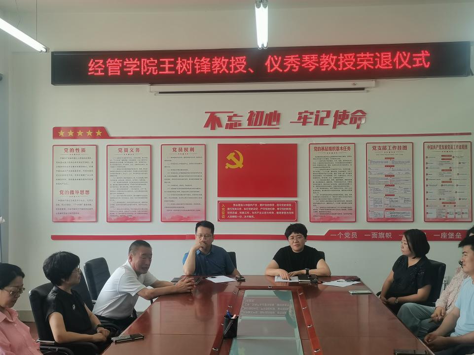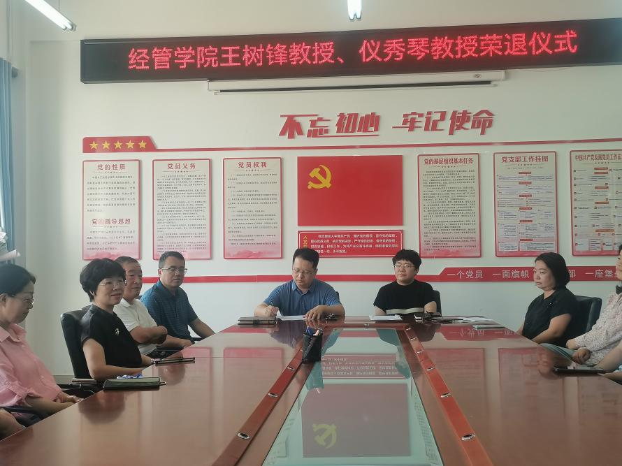 7月9日,best365中国官方网站举行了王树锋教授、仪秀琴教授光荣退休仪式,公司党政班子成员、综合办主任及财务管理系和审计系全体教师参加仪式。仪式由学院副经理耿晓媛主持。
