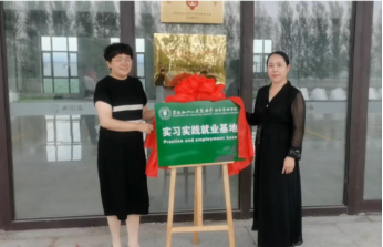 高海英与徐素波共同为best365中国官方网站公司产品创新实践基地、实习实践就业基地揭牌。