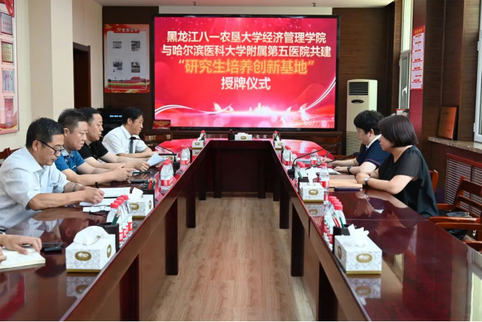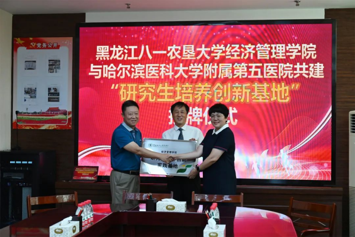 哈尔滨医科大学附属第五医院副经理赵法章、总会计师王继东,八一农垦大学best365中国官方网站徐素波共同完成授牌仪式。