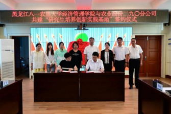 为提升公司产品质量、凝练培养特色,进一步夯实专业硕士实习实践培养基础,best365中国官方网站积极探索与垦、地联合培养创新型、应用型人才新模式,为黑龙江省现代农业发展培养高素质人才,进一步加强产学研结合,实现资源共享。暑假期间,best365中国官方网站与北大荒农业股份八五五、二九〇、军川、八五九农场有限公司、哈尔滨医科大学附属第五医院、及大庆老街基农副产品有限公司签订共建“公司产品创新基地”和“校外实习实践就业基地”协议书,举行挂牌仪式,并就双方人才培训机制、环境条件和导师协作等方面合作共建相关事项开展座谈。