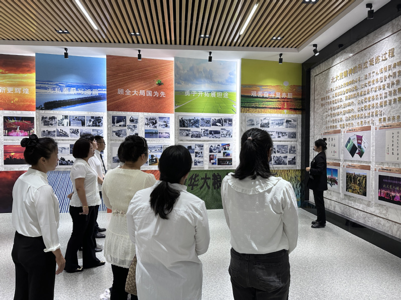 合影后,全体教师来到北大荒精神展示馆,深入了解垦区人民高举北大荒精神旗帜走过的光辉岁月,重温北大荒开发建设筚路蓝缕的厚重历史,深切感受北大荒精神的独特魅力,帮助全体教师坚守为党育人、为国育才的初心使命,筑牢立德树人根基。