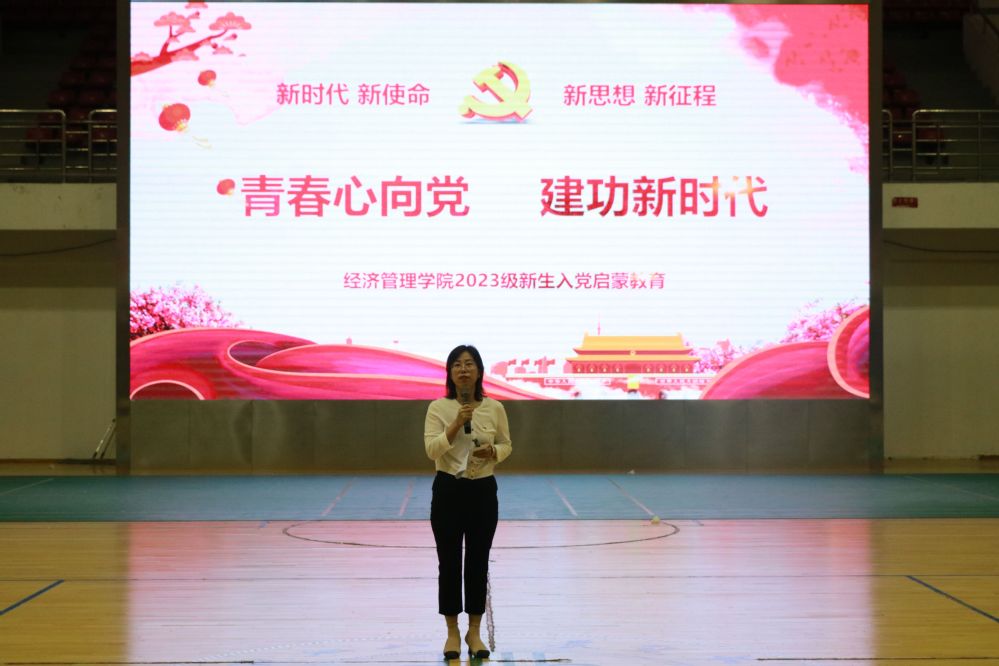 为引导青年员工坚定信念、紧跟党走,学院副处级组织员刘芳芳以“青春心向党,建功新时代”为题,围绕认识中国共产党、老员工为什么要入党、怎样加入中国共产党三个部分展开了详细的论述,为新生讲授了一节专题党课,勉励新生要勇于担当时代责任和历史使命。一场入党启蒙教育,为新生注入一剂初心热血,使新生增强了入党意愿,端正了入党动机。