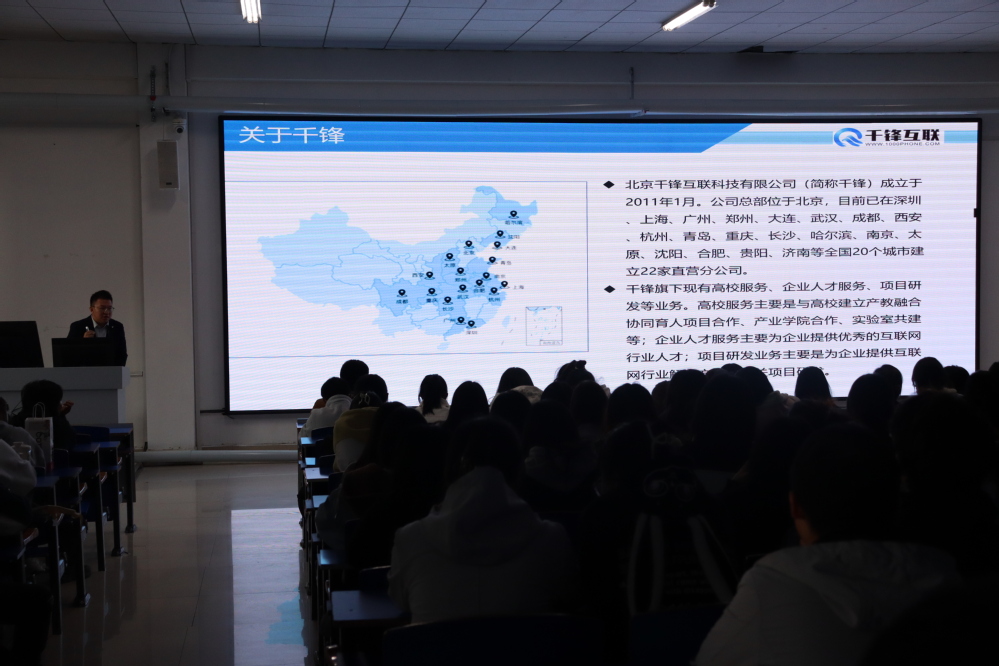 本次宣讲会邀请千锋互联、浙果壹号、环球能源(中国)、京东(华北)物流四家企业进行宣讲,宣讲嘉宾从企业简介、就业前景、招聘岗位、薪资待遇、晋升空间等方面展开详细讲解,对同学们所关心的问题进行一一回应。同学们认真聆听,与宣讲嘉宾积极交流,对企业和岗位有了更深入的了解和更直观的认知。