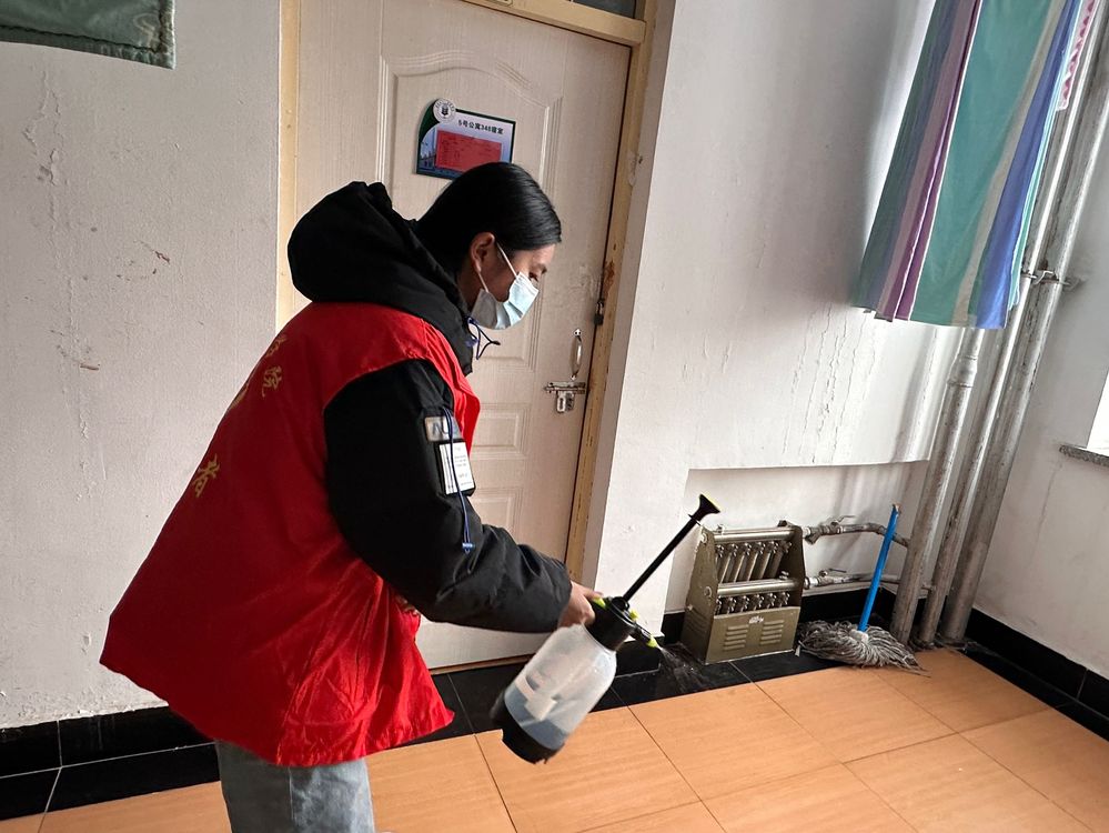 消毒过程中,身穿红马甲的志愿者戴好口罩,手持消杀壶,秉承“大消杀、全覆盖、广参与”的原则,着重对公寓走廊、洗漱间等区域进行消毒,全覆盖消灭卫生死角。志愿者向同学们宣传普及呼吸道感染疾病的日常预防措施以及冬季健康保健知识,提醒同学们适时开窗通风,保持室内空气流通,必要时定期进行寝室消毒,减少呼吸道传染病的传播。