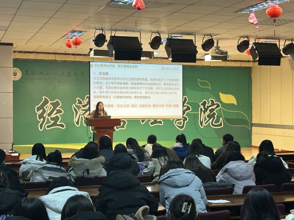 赵艳荣分享自身参加学术竞赛、科研项目以及论文阅读、选题、写作方面的经验,向同学们说明三个“好”,即好队友、好本子、好答辩的重要性,现场气氛活跃轻松,掌声不断。