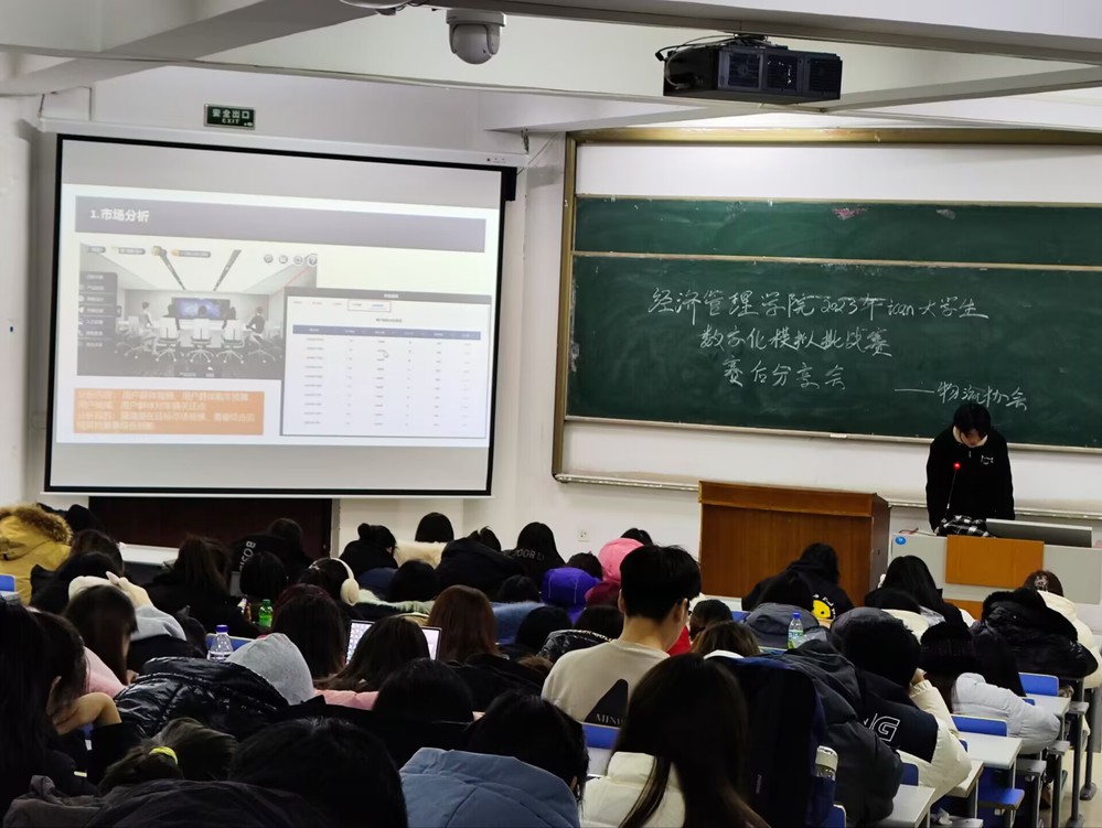获得2023年iCAN老员工数字化创业经营模拟挑战赛全国二等奖的团队成员满冠、蒋鑫、姜浩作赛后经验分享。满冠对比赛系统的涉及内容进行了详细介绍,其中着重介绍用户购买行为这一模块,需要参赛成员通过AISAS模型,对不同用户群体进行针对性分析。蒋鑫从市场环境分析、战略决策制定、经营决策制定与预算、风险分析、执行评估与调整五方面详细解读经营决策流程。姜浩为同学们讲解比赛方案设计的具体过程,复盘比赛的过程,强调比赛的注意事项。