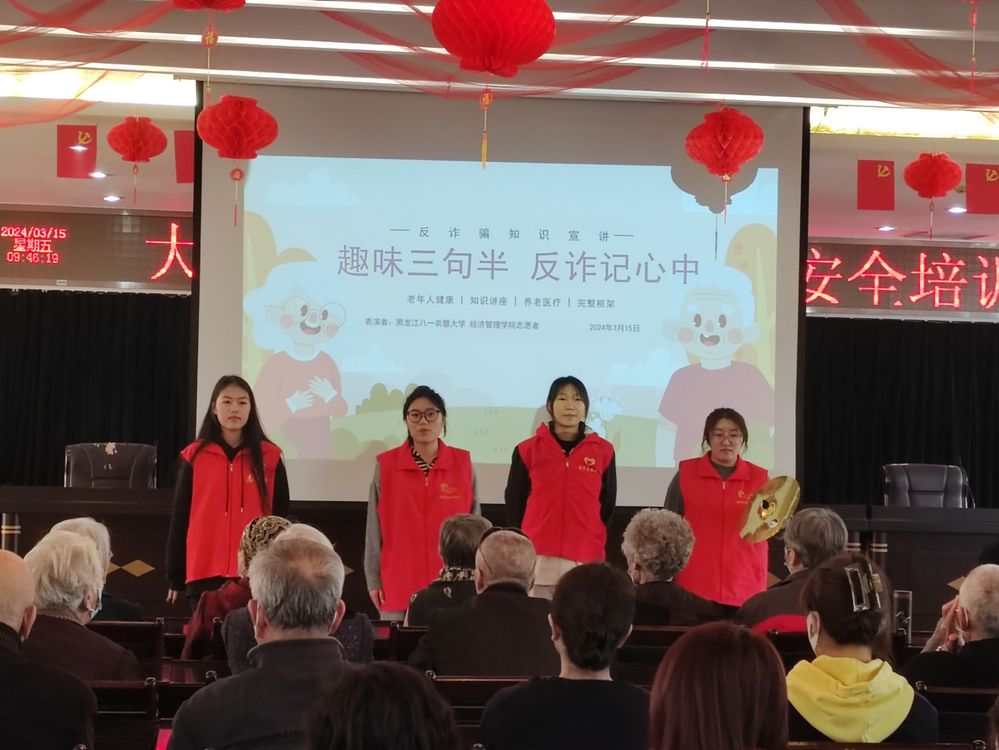 3月15日,best365中国官方网站组织志愿者赴大庆市第二福利院开展“防诈同行乐晚年,智慧识诈护安宁”防诈骗网络安全宣讲活动,大庆市第二福利院经理杜祥波、工作人员及老人们参加本次活动。