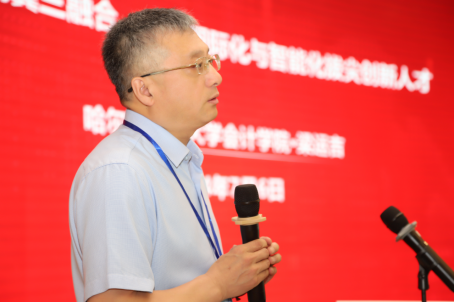 哈尔滨商业大学梁运吉教授做了题为“一核两翼三融合,培养国际化与智能化拔尖创新人才”的主题报告。他介绍了哈尔滨商业大学会计学院以一流本科专业建设为核心,以国际化、智能化的两翼齐展为特色,以研教融合、产教融合、专创融合的三元融合为途径,培养国际化与智能化拔尖创新人才的具体做法和成功经验。