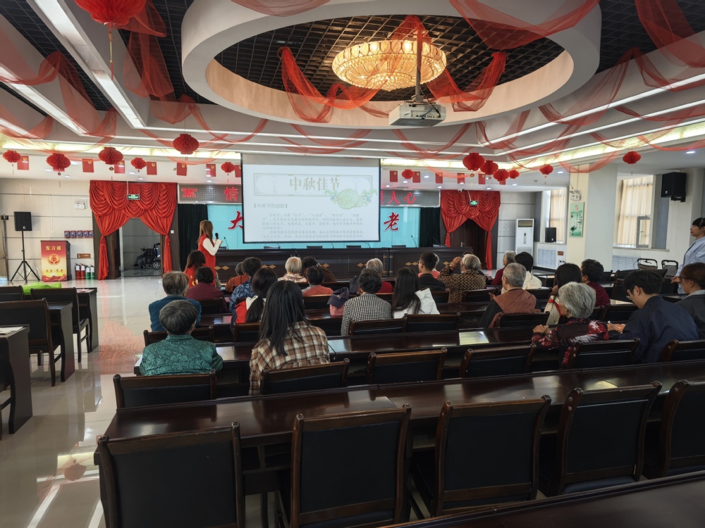 志愿者结合PPT向老人们科普中秋节的历史由来、传统习俗,开展吟诵中秋诗词,猜灯谜等小游戏,让老人们进一步了解中国传统节日的文化魅力、内涵和底蕴,为老人们带去温暖和欢乐。