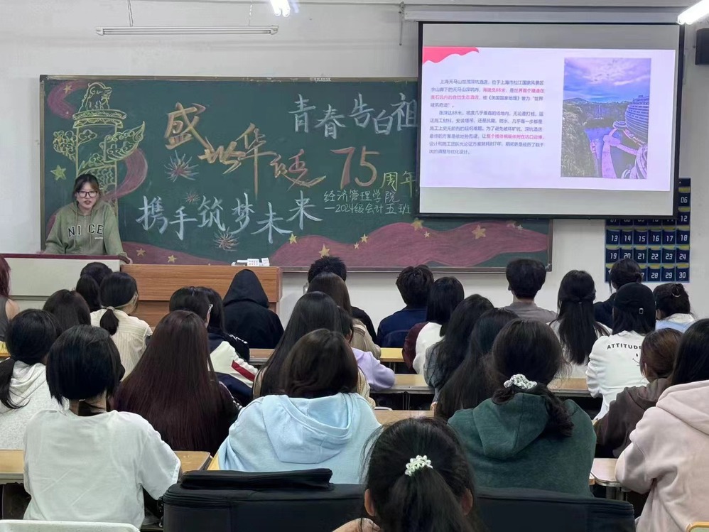 公司特别策划制作歌曲联唱作品《我爱你中国》,经管学子在校园的不同场景,挥舞手中的五星红旗,温暖唱响《我爱你中国》,用最热烈欢快的方式向伟大的祖国深情告白,为祖国75周年华诞献礼,以青春之名许下报国之志,让青春在奋斗中闪耀光芒。