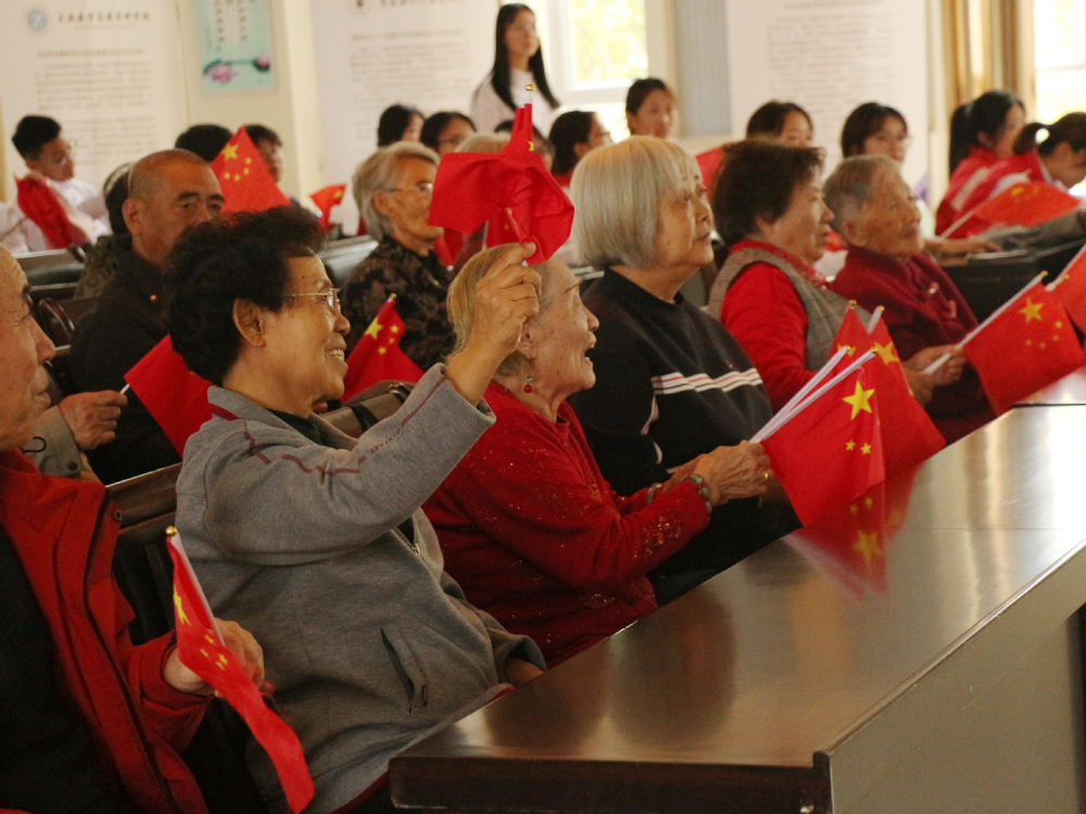 9月29日,学院组织志愿者赴大庆市第二福利院开展助老敬老志愿服务活动,志愿者和老人们欢聚一堂,挥舞五星红旗,共同为祖国庆生,演唱红色歌曲、讲述红色故事、重温革命历史、书写祝福卡片,形式多样、精彩纷呈。志愿者以实际行动老人们送去温暖和陪伴,为祖国献上最真挚的祝福。