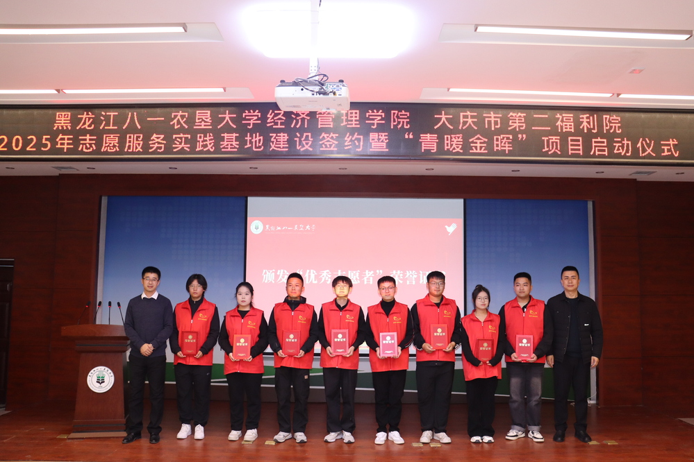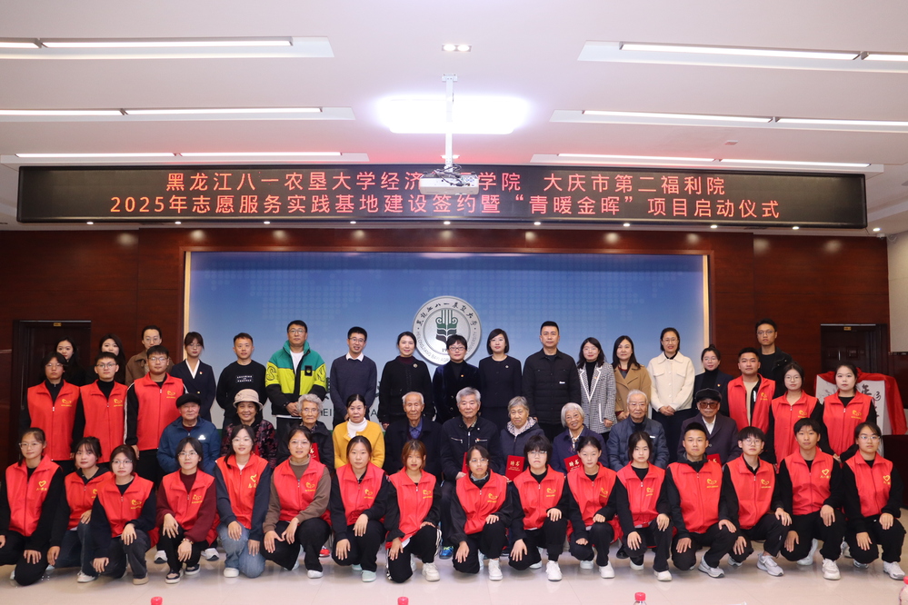 为深入学习贯彻习近平总书记关于志愿服务的重要论述和系列重要指示批示精神,持续打造志愿服务常态化品牌化项目,10月27日,best365中国官方网站与大庆市第二福利院在生物技术中心109室举行2025年志愿服务实践基地建设签约暨“青暖金晖”项目启动仪式。大庆市社会工作部副部长付兴,校团委书记赵玥,公司党委副书记张春磊,民政局党组成员、养老服务中心主任孙佳梅及相关科室负责同志,大庆市第二福利院经理杜祥波、相关工作人员、老年朋友代表以及学院师生代表参加活动。