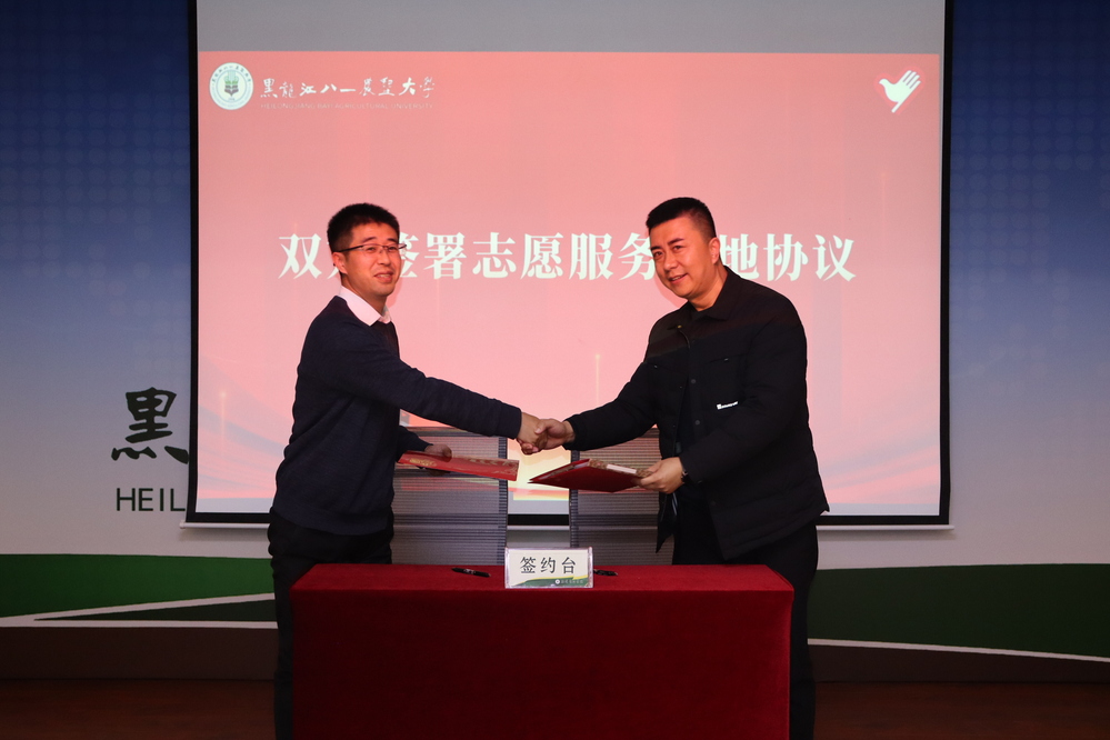 张春磊与杜祥波签署共建志愿服务实践基地协议。