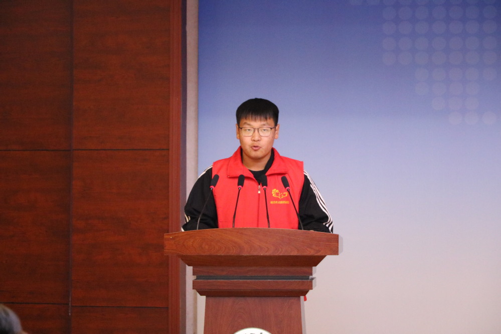 志愿者代表任雨航分享自身参与“青暖金晖”志愿服务项目的经历和感悟,承诺将以更加饱满的热情投身为老志愿服务活动,用实际行动传承和弘扬中华民族尊老敬老爱老的传统美德,让爱与温暖持续传递。