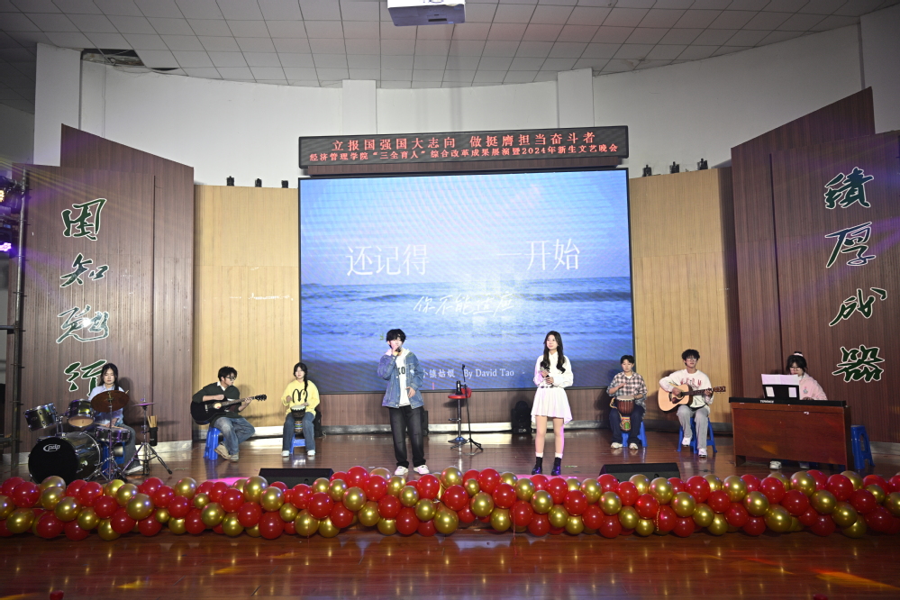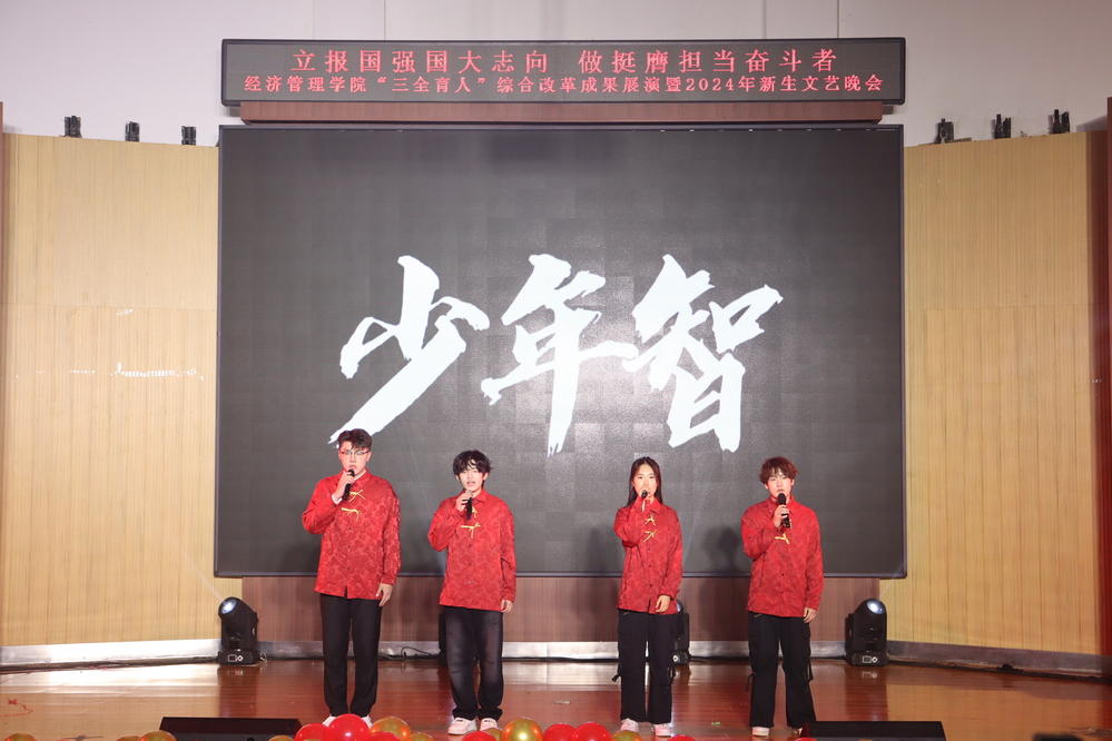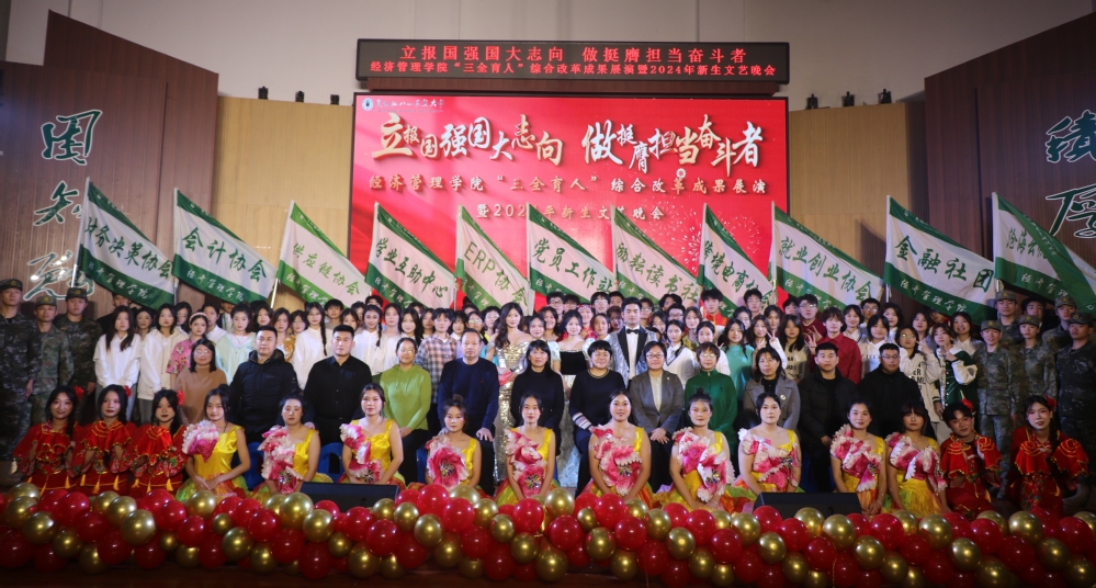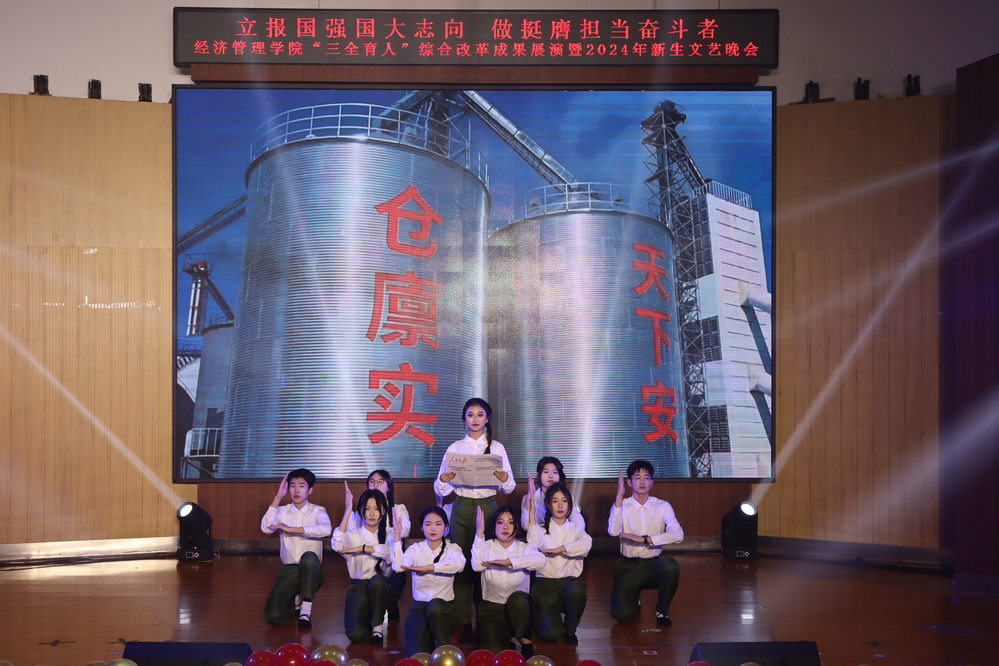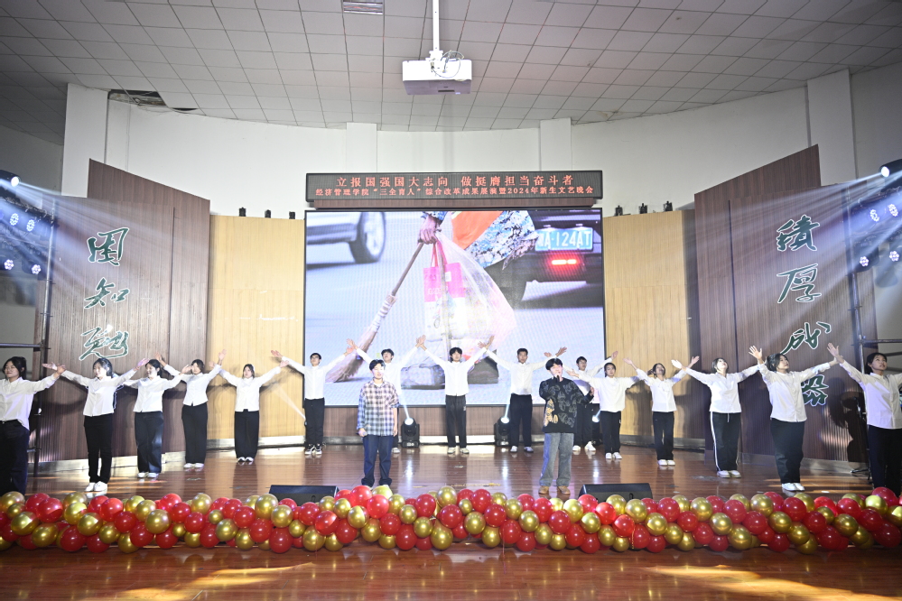 晚会分为“赓续笃行扬‘新’帆”“激扬青春展‘新’颖”“挺膺担当绘‘新’篇”三个篇章,聚焦“三全育人、五育融通、师生融乐、全面发展”的奋斗姿态和盎然光景。一曲《大中国》气势磅礴、振奋人心,奠定激昂奋进的红色主基调;退伍老员工士兵的情景表演《祖国不会忘记》致敬卫国戍边英雄,“清澈的爱,只为中国”的赤子情怀动人心扉,“当祖国和人民需要我时,若有战,召必回”的铮铮誓言响彻场馆,赢得了现场观众的深切共鸣。《像你这样的朋友》《小镇姑娘》律动飞扬、直击心灵,传递出对青春真挚友谊的珍视和追求梦想永不落的勇气。舞蹈《芳华》再现北大荒人以灿然芳华擎帜荒原、点燃火种的壮丽诗篇,展现出学院用北大荒精神铸魂育人,追寻拓荒者足迹、点亮芳华青春的教育理念;《这世界那么多人》《少年中国说》展示新时代北大荒精神传承人的新面貌新风尚,表达出经管学子为国家而奋斗、为理想而前行,不负时代、不负人民的坚定决心。晚会在《美丽中国》充满朝气深情的词曲音画中落下帷幕,唱响对祖国的无限热爱,激励师生锚定卓越目标,追求非凡品质,激发无限潜能,凝心聚智、再启新程。