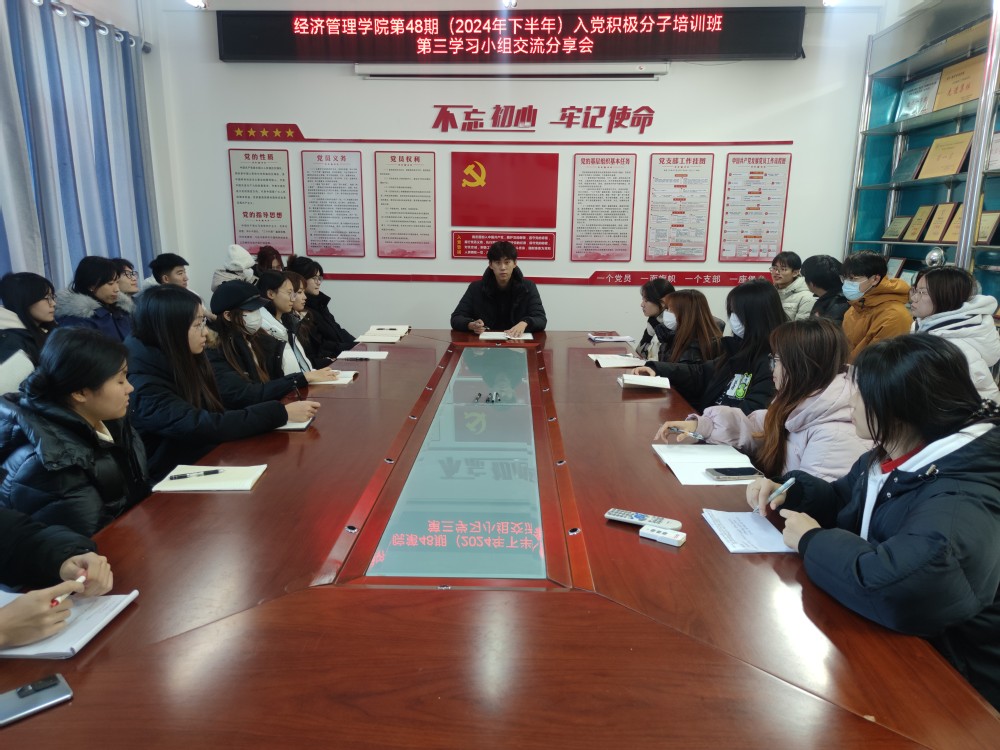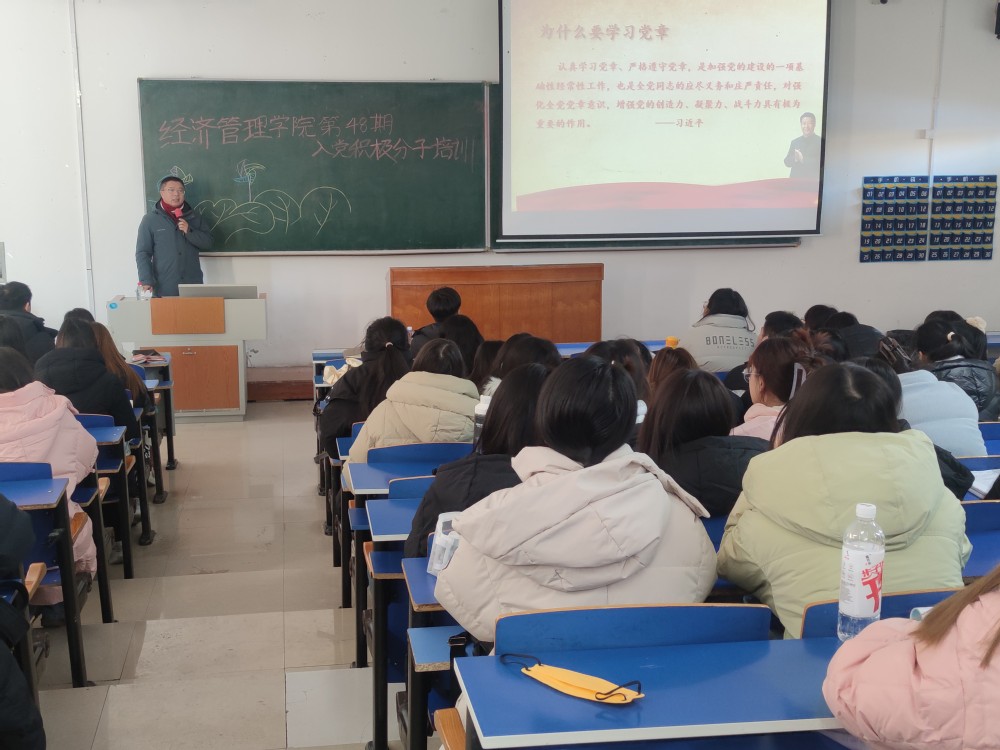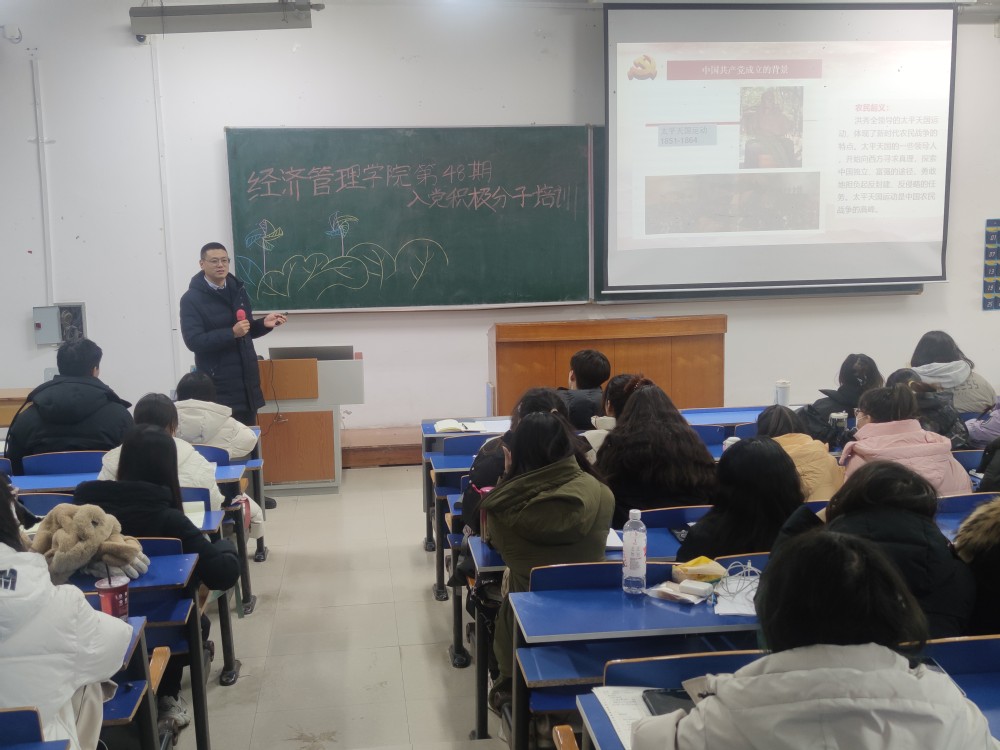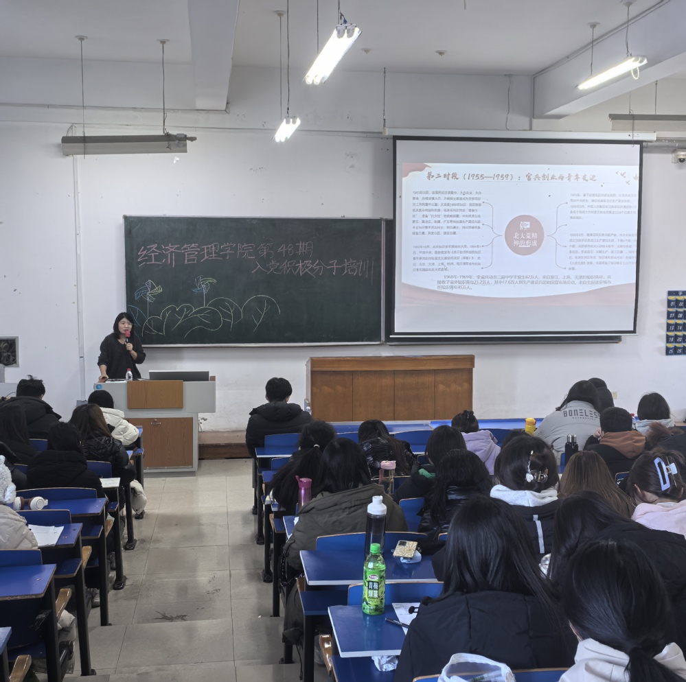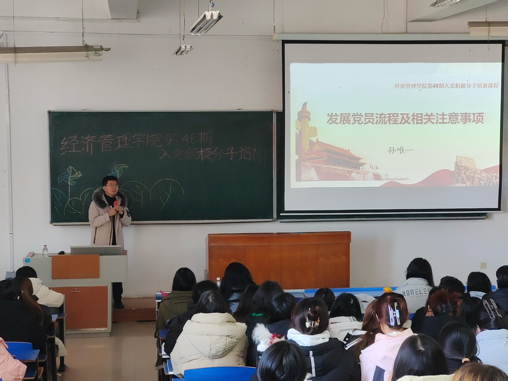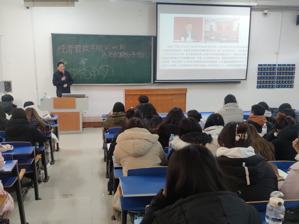 为深入学习贯彻党的二十届三中全会精神,切实做好入党积极分子的培养、教育工作,提升党员发展工作质量,经济管理公司党委于12月7日至8日在主楼东区216教室举办第48期入党积极分子培训班,142名学员参加培训。