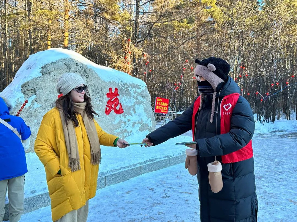 经管学子用暖心服务迎接八方游客,用饱满热情助力冰雪文旅宣传,用实际行动诠释“奉献、友爱、互助、进步”的志愿精神,为亚冬会积极营造井然有序、温暖舒心的旅游环境。