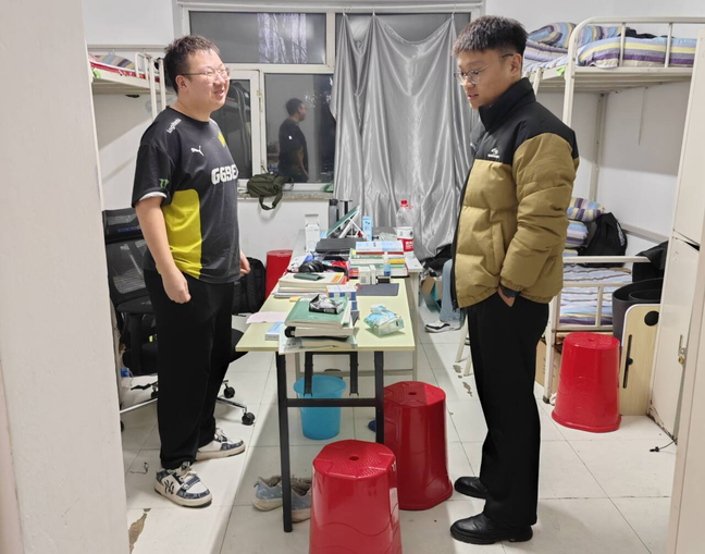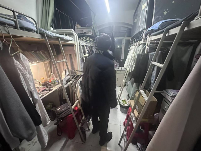 辅导员重点检查了用电安全、卫生状况以及房间设施运行情况,逐一核查寝室插座线路、消防通道及卫生死角,对物品堆放杂乱等现象进行现场教育整改。针对员工此前反映的寝室断电、卫生间漏水等问题,辅导员详细记录并联系相关部门,确保尽快完成检修。