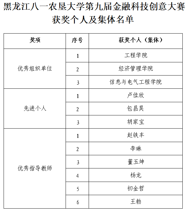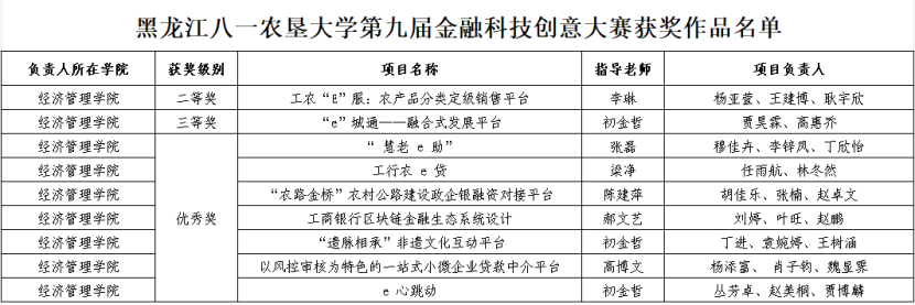 在校第九届金融科技创意大赛中,员工团队荣获二等奖1项、三等奖1项、优秀奖7项,获奖项目总数占赛事全部奖项的60%;学院荣获“优秀组织单位”称号,包昌昊获评“先进个人”荣誉称号,李琳获评“优秀指导教师”荣誉称号。