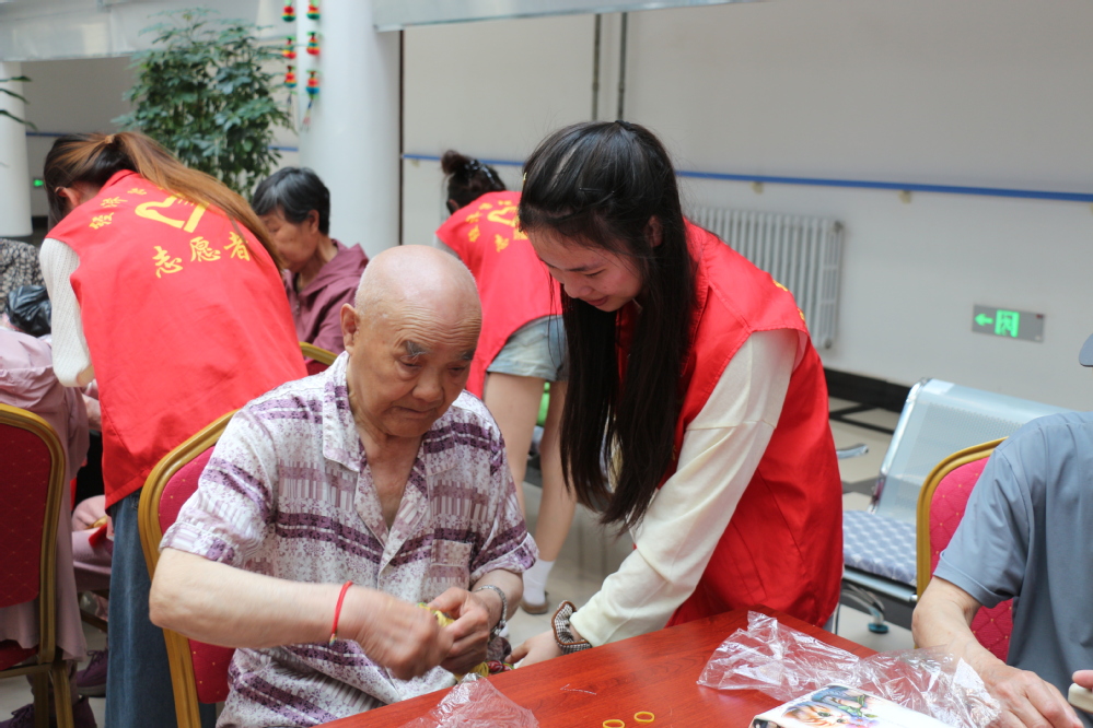 在“端午知识小讲堂”环节,志愿者们用通俗易懂的语言为老人们讲解端午节的起源和习俗。随后,志愿者们与老人们一同在动手实践中感受中华优秀传统文化的魅力,体验制作艾草香囊、艾草锤,编织五彩绳。志愿者们与老人们围坐在一起,共同动手包粽子,从折叠粽叶到填充糯米、蜜枣,再到捆扎成型,手法虽不熟练,但现场其乐融融、粽香四溢,充满了节日的温情。
