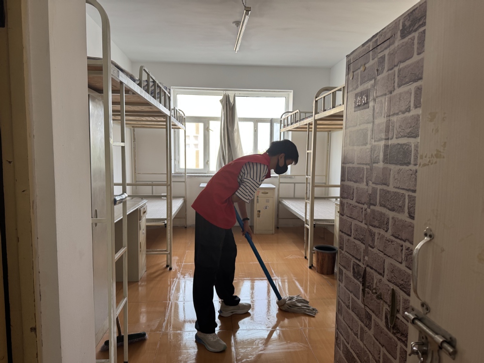 活动前期,学院统筹规划,根据新生寝室分布制定清洁方案,将志愿者合理分组并明确清扫标准与安全规范。活动中,志愿者们携带清洁工具,以小组为单位深入新生公寓楼,严格按照“清—扫—消—查”四步法开展工作。从擦拭门窗桌椅到清理卫生死角,从规整公共区域到检查设施设备,每个环节都体现着细致与用心,各区域负责人开展“地毯式”复查,逐间确认是否清理到位、设施报修是否登记完整。经过志愿者们的辛勤劳动,90余间新生寝室窗明几净,焕然一新,洋溢着家的温馨。