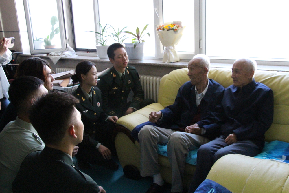 9月27日,12名退役老员工士兵走进大庆市第二福利院探访刘宝真、王相义两位抗美援朝老战士,以敬献鲜花、送上手写信的方式,向老前辈致以最诚挚的敬意与感恩。他们围坐于老战士身旁,静静聆听那段硝烟弥漫的战斗往事,深刻感悟先辈对党忠诚的信念与保家卫国的担当。