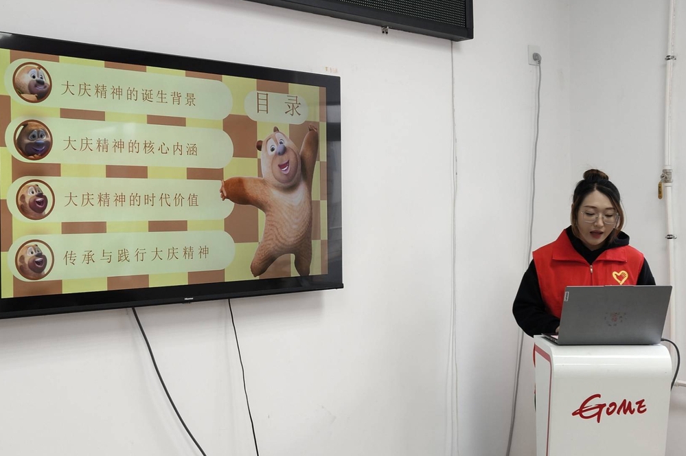 10月26日,东安社区活动室内,一场别开生面的“铁人精神”宣讲会热烈展开。志愿者们以历史影像为媒,通过趣味问答、互动游戏等形式,将铁人王进喜的奋斗故事娓娓道来。孩子们听得入神,不时举手提问,现场气氛热烈而温馨。历史与现实在互动中交织,奋进的种子在孩子们心中悄然生根。