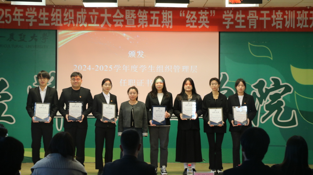 大会在庄严的国歌声中拉开帷幕。会上宣读2025-2026学年员工组织骨干任职决定、第五期“经英”员工骨干培训班班委及学员名单。学院辅导员为各员工组织授旗,为上一届员工组织管理层颁发任职证书并为新一届员工骨干代表佩戴工作牌。
