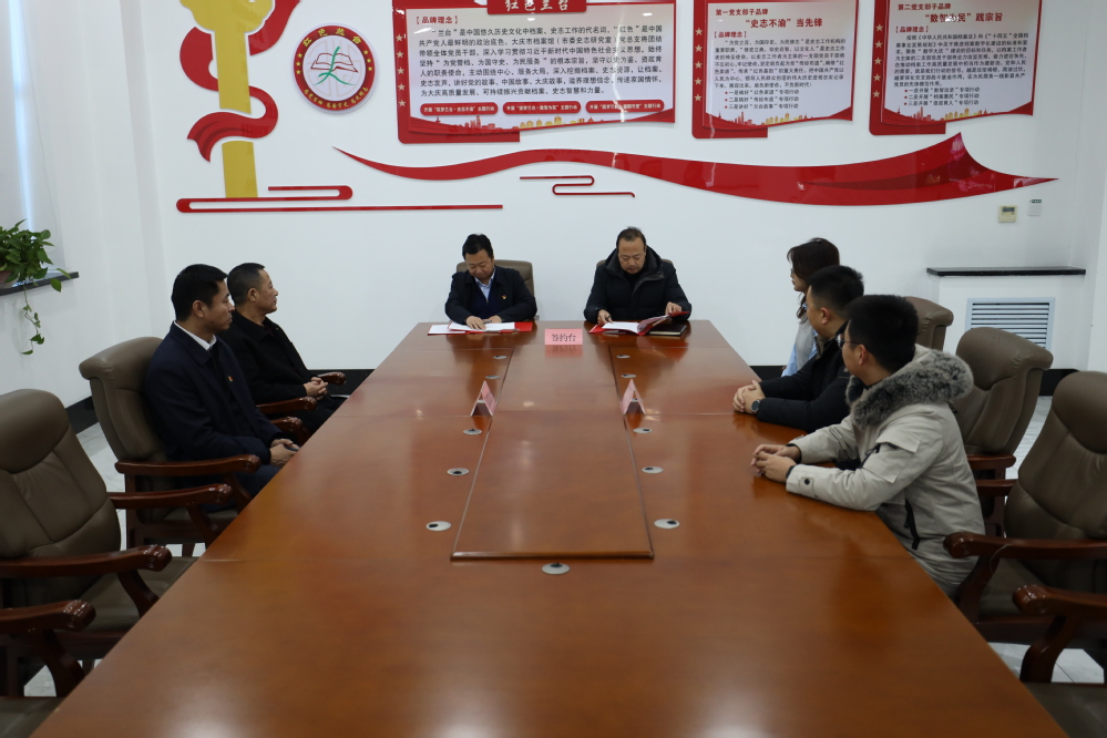 仪式现场,李志有与陈存喜代表双方签署党建共建与志愿服务合作协议,并共同为“党建共建基地”“志愿服务实践基地”揭牌。双方明确以“组织共建、资源共享、活动共办、人才共育”为原则,计划通过联合开展主题党日、红色文化研学、档案志愿服务等特色活动,构建“党建+红色教育”融合发展新模式。