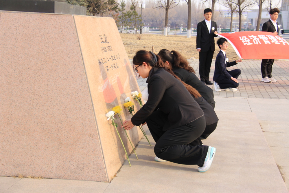 4月2日,100余名师生齐聚王震将军像前举行缅怀纪念活动。员工代表结合校史深情讲述将军光辉事迹,追忆垦荒创业的峥嵘岁月。全体师生肃立默哀,员工代表依次敬献白菊,以洁白花朵寄托深切哀思。在宣誓人的带领下,全体同学庄严宣誓,铿锵誓言彰显青春担当,伴随激昂校歌,回望垦荒初心,凝聚起接续奋斗、勇毅前行的精神力量。